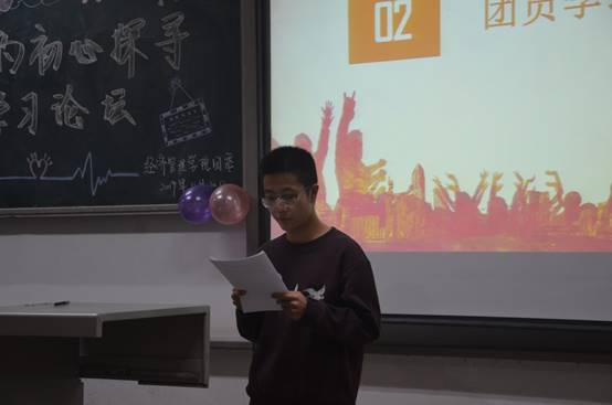 首先,由许金鑫老师对本次论坛的内容和举办意义进行了介绍,他指出本次论坛不仅可以让同学们回忆入团初心,也可以促进学校各团员思想素质的发展。党有号召,团就要有行动,作为青年团员就要向党员看齐,做一个有理想、有追求的时代新人。紧接着,由参与本次论坛中优秀的团员代表进行学习心得分享,上台演讲的同学发言别具匠心,他们一致认为团员的初心是坚定不移跟党走,作为团员,即使生活在和平年代也不能停止奋斗的步伐,要把学习作为第一要务,只有保持先进性,才能始终走在时代前沿。最后,进行小组讨论发言,同学们对许老师的发言和优秀团员的演讲进行激烈的交流讨论,主持人抽选出了几位同学表达了自己的感想与看法。