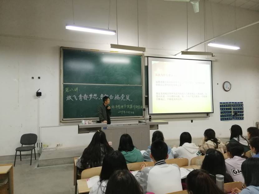 2019年10月31日晚7时,best365网页版登录官方网站第59期党校于教3-217教室进行了党课第八讲理论授课,为了进一步加深入党积极分子对党的理解和认识,提升党校学员的思想高度,本节党课由党委组织部赵伟奇老师为学员们以《放飞青春梦想,争做合格党员》为主题展开授课,党校250余名学员参与。