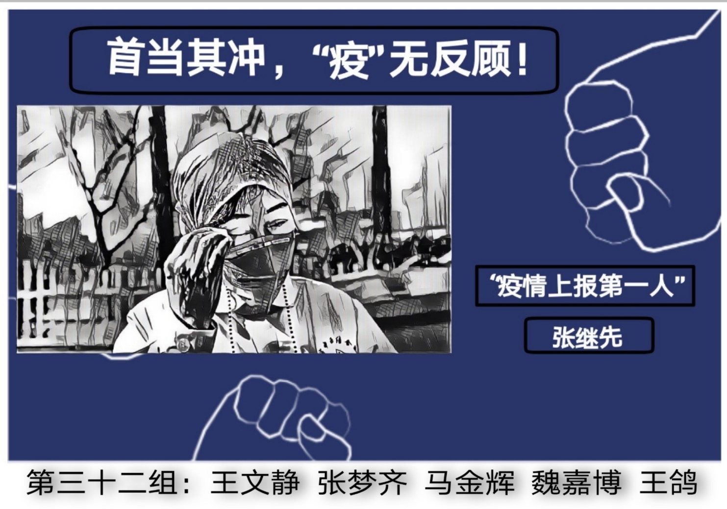 活动伊始,全体成员观看了抗疫模范视频,短片展现了在这座千万级人口的城市里,在疫情从快速爆发到逐渐被遏制的过程中,抗疫模范不顾个人安危,奋战在新冠肺炎疫情防控一线,充分体现了战疫下的中国速度和中国力量。接着,王凡讲述了疫情期间的温暖故事,号召大家继承英雄遗志,弘扬爱国精神,勇担使命职责,传承红色文化。随后,各组的电子版海报作品进行一一展示,并由各组代表进行了线上投票,选出心目中的优秀海报。前十名的小组在之后进行了海报分享,他们讲述海报中李文亮、夏思思等抗疫英雄们的事迹。最后,王凡以“没有从天而降的英雄,只有挺身而出的凡人” 对此次活动进行了总结,他致敬那些奋战在抗击疫情第一线的白衣天使们。