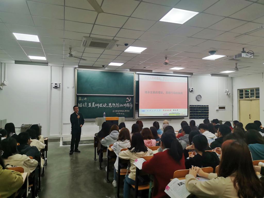 3月25日晚,best365网页版登录官方网站第62期分党校培训第二讲“继承发展的理论,思想行动的指南”在教1-201顺利开讲,本次主讲老师特邀请校党委组织部副部长姜冰清老师为220余名党课学员进行指导及授课。