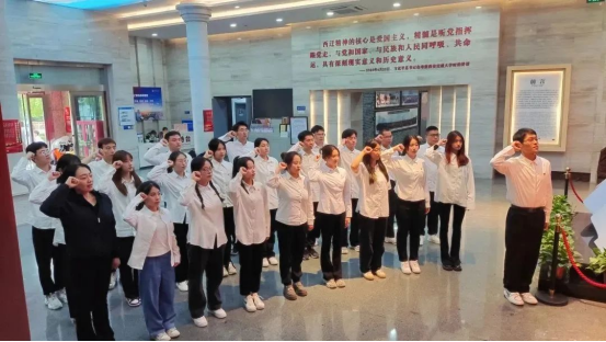 首先,全体党员在展厅内重温入党誓词。面对党旗,大家庄严宣誓,用铮铮誓言彰显入党初心,牢记党员使命,永葆党员本色。