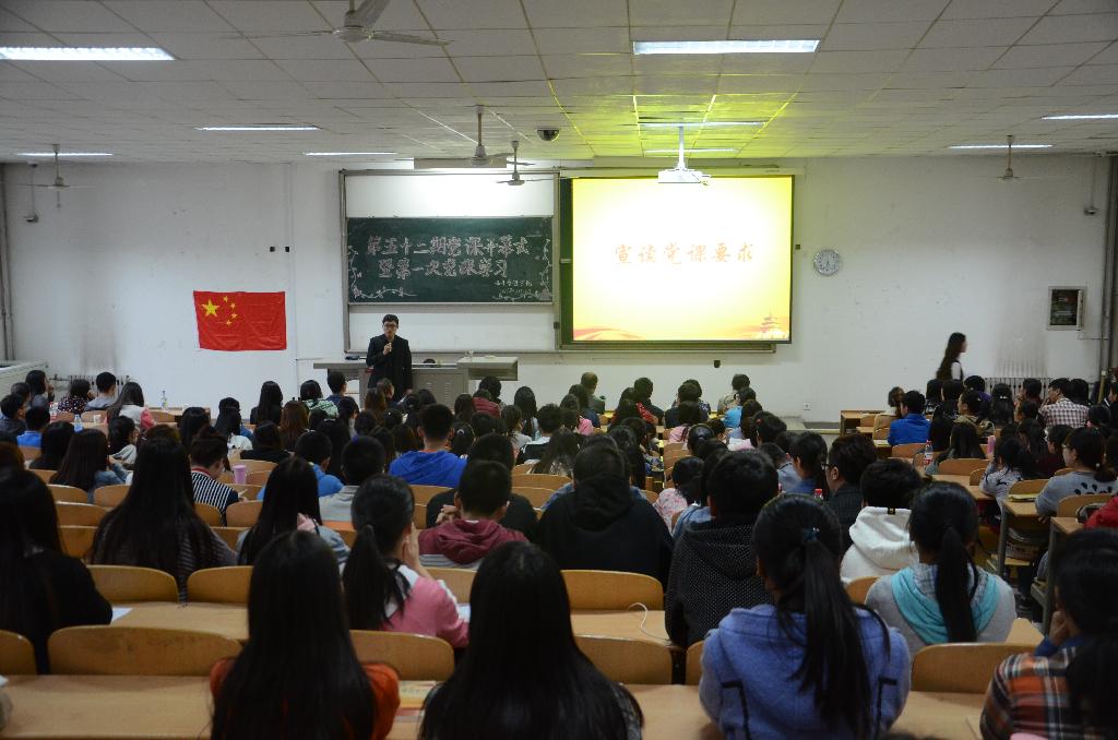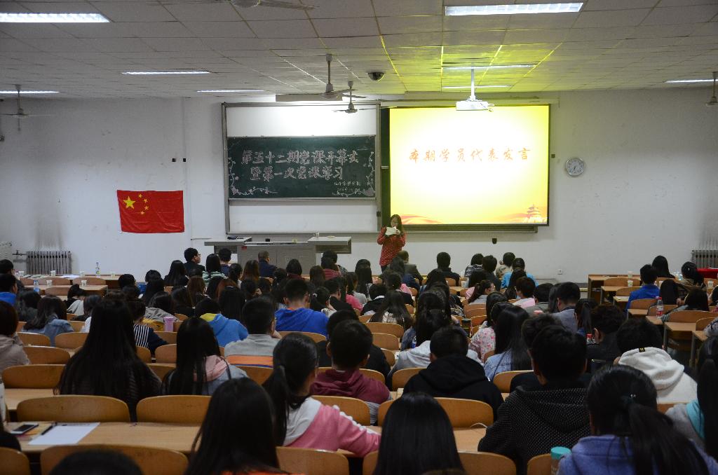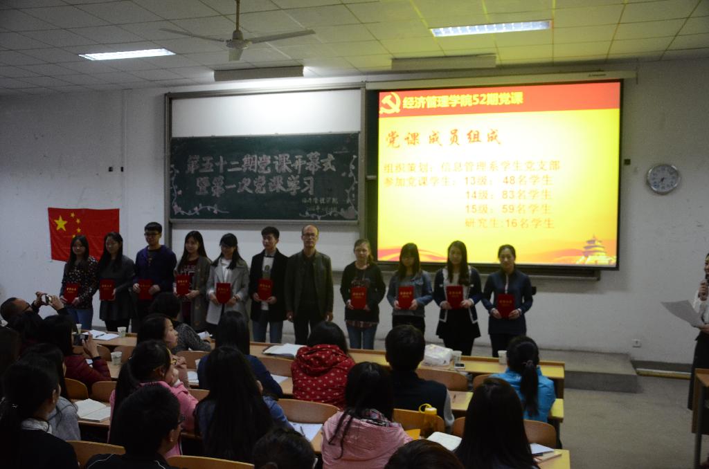 为了进一步提高同学们的党政素质,加深同学们对党的精神的认识与理解,激发同学们爱国,爱党的热情,我院于3月28日晚上6点20分在教3―115举行了经管学院第五十二期党课培训开学典礼与第一次的党课培训。出席此次典礼的有党委书记曲敏、党委副书记程新峰,团委书记冯川川,以及各个学生支部书记。第五十二期全体党课学员及党员辅导员参加此次会议。
