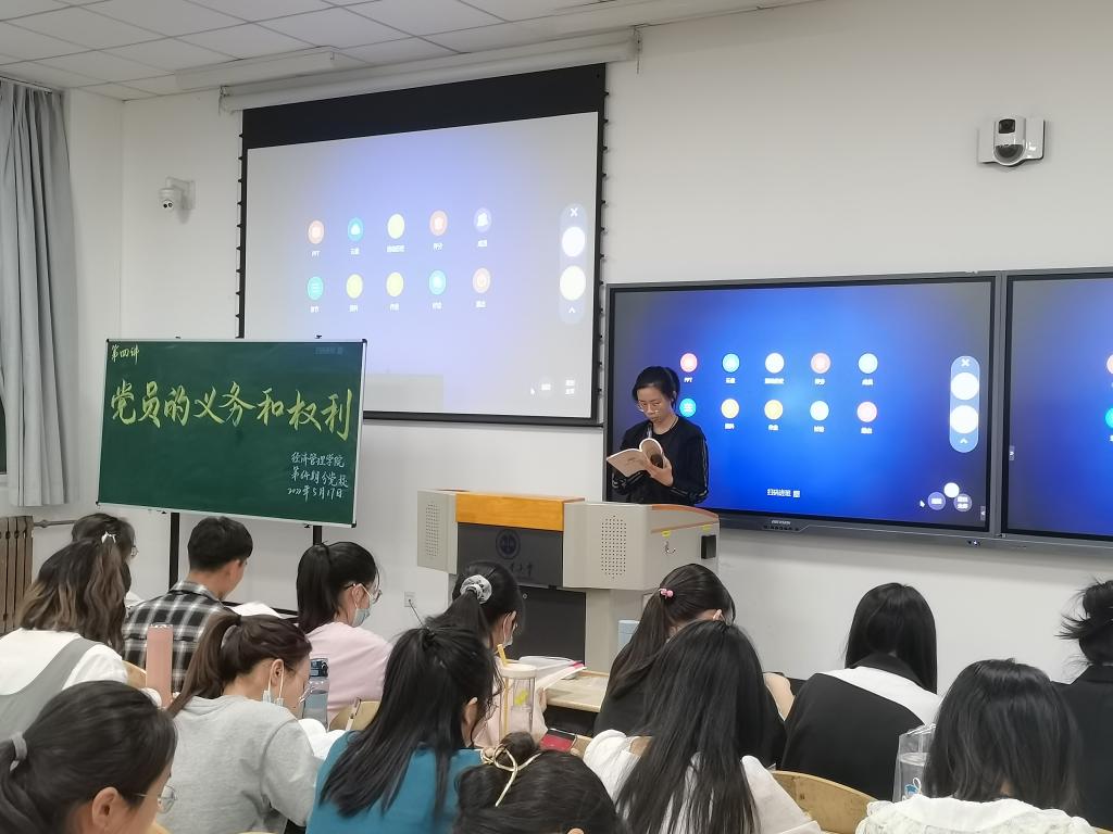 课上,王育晓老师先就“为何入党”这一问题对在座党课学员进行提问,再由浅入深,结合自身经历,向同学们讲述了其自身的入党动机和入党前的思考,从而引出正确的入党动机是“为实现共产主义而奋斗”和“全心全意为人民服务”。她指出,党员的义务就是指党员对党应尽的责任,是党对党员的基本要求。党员必须全心全意为人民服务,不惜牺牲个人的一切,为实现共产主义奋斗终身。作为一名共产党员,必须认真履行自己的义务。随后,她又详细解释了“权利"和“权力”的概念、区别和关系,并结合当代大学生的学习生活,深刻地解释了它们的定义。
