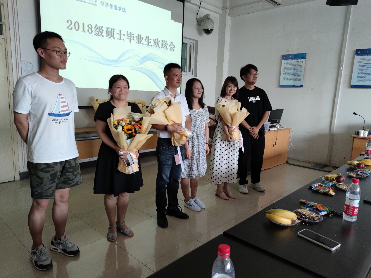 随后,毕业生们集体欣赏了研究生会精心制作的《致2018级的毕业生》电子相册,回顾三年走过的路,看着一张张熟悉的面孔,教室里欢声笑语。最后,为了感谢导师三年的付出与陪伴,毕业生代表为导师们送上鲜花并合影留念。