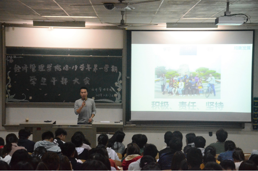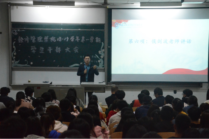 会议伊始,程新峰书记先对新加入的学生干部表示欢迎并对全体团学组织成员寄予殷切期望,希望大家权衡好学习、工作、生活三者之间的关系,做好模范带头作用,协助好学校顺利完成省级文明校园的评选工作。紧接着,侯剑波老师向大家提出“四心”的期望,即责任心、恒心、细心与创新,以积极的态度面对每件事,不忘初心。学生会主席赵俊分享了自己的工作心得,他希望各位学生干部端正工作态度,踏实肯干,相互配合完成好各项工作。部长代表胡程提出学生干部应找准定位,彼此尊重,互相交流学习。随后,部员代表王溢宣发言,他表达了作为新干事对未来工作的热情与服务意识,会以更加积极的态度对待以后的工作。会议最后,各部门部长对本学期工作计划进行阐述。