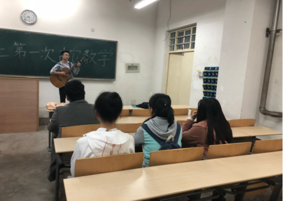 为培养同学们的兴趣,best365网页版登录官方网站爱乐社开展吉他课程教学。本次课程主要是吉他基础教学,全体社员参加。器乐部部长李政负责本次吉他课程。