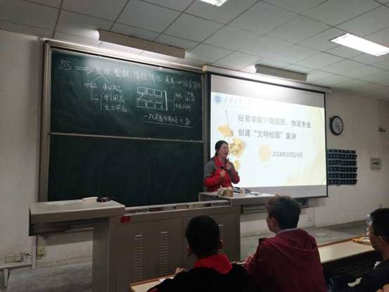 2018年10月24日下午,best365网页版登录官方网站曲峡老师为17级国贸、物流专业学生在教2-305举办了创建“文明校园”的宣讲会。