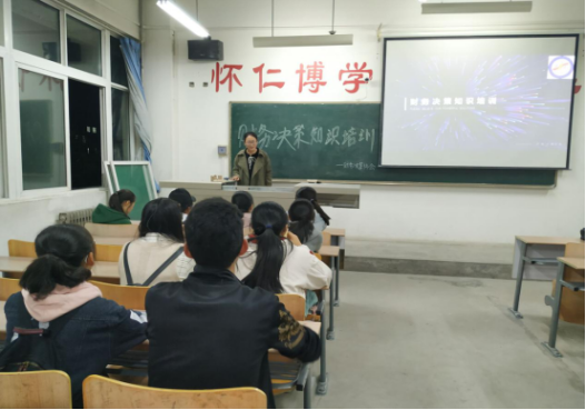 本次讲座由财务决策协会前会长张玉与会长吉训凡主讲。首先由前会长张玉讲解关于财务决策的知识,其中详细包含财务知识中所涉及的决策方面知识点,让大家对于财务决策有了详细的了解。接着,由会长吉训凡主讲关于财务方面的专业知识以及一些课外的理财小诀窍,并对比赛相关内容进行讲解和安排。