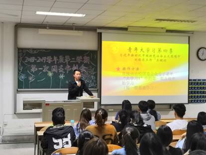 本次会议由组织部祁馨仪主持。会议伊始,组织部副部长刘倍含为各团支书讲解了本学期的3个团日活动具体细节并对各支部开展团日活动需上交的材料提出了新的规范与要求,她提出团日活动应多元化,杜绝格式化并再次强调团支书考核制度。接着,组织部部长李家琛向参会同学介绍了“五四评优”的相关事宜,并希望每位团支书能够做好工作,同时对于团支部工作手册的填写做了培训并强调了该手册的重要性,他要求各团支书应履行自身职责,认真负责地填写工作手册。最后,王海睿对本次大会进行了总结发言,她号召各团支书一起打造一个更具凝聚力、更团结、更积极的团支部,对我院团委后续工作提出了期望与要求。