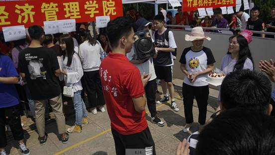 在新生抵达学院报名点后,学长学姐们缓缓地拿出生日蛋糕和礼物,在场的学院老师、学长学姐们一起为小寿星唱起了生日祝福歌、献上了最真挚的祝福。唱完生日歌,马媛媛同学眯着眼睛许下生日愿望,师生们一起有说有笑,现场气氛十分温馨。