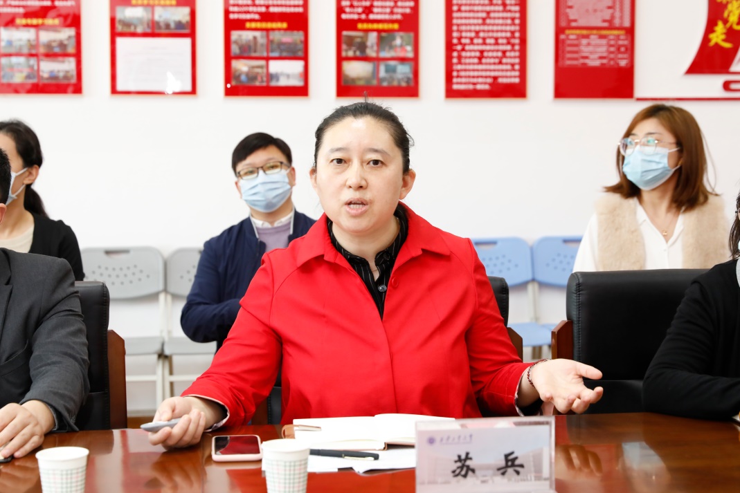 会前,赵校长对学院软科学基地、创新创业实训室进行实地走访调研。在座谈会上,苏院长围绕学院基本情况、2021年工作基本情况、下一步整体工作设想及2022年工作思路,目前存在的问题及解决思路进行了汇报。