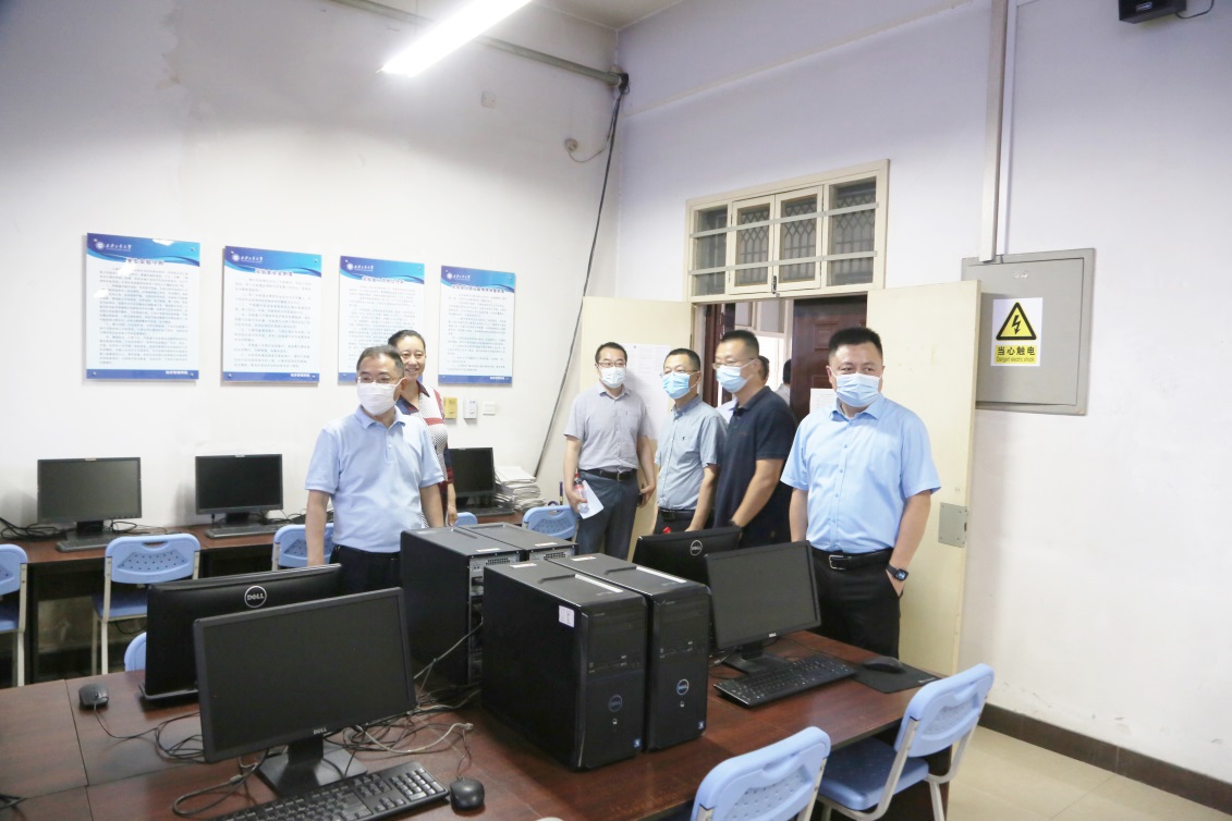 赵祥模校长一行前往学院办公室、实验室等重点区域,详细了解教学准备、实验教学保障、安全等方面情况。赵祥模校长指出,要高度重视,认真做好开学准备,对新学期的工作要进行周密的安排部署,把开学前各项准备工作做细、做实,发现问题要尽快整改到位,确保开学各项工作稳定有序进行。