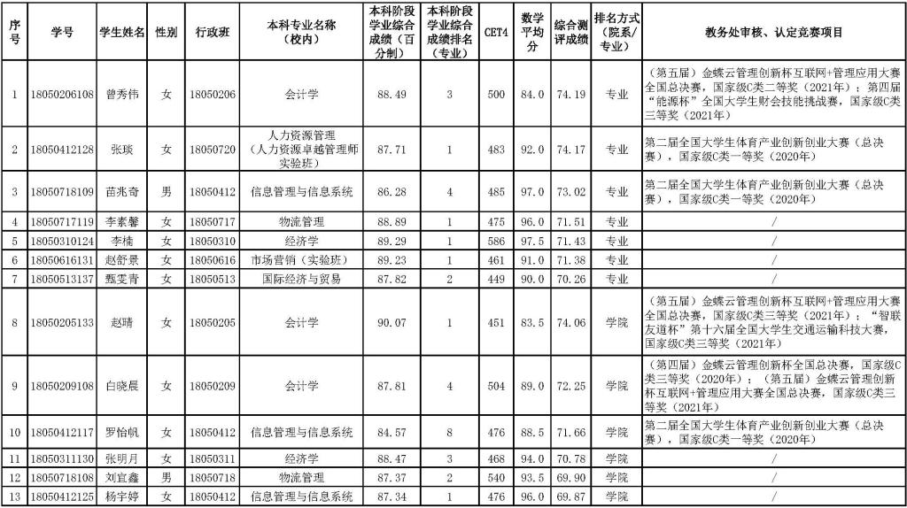 根据学校《best365网页版登录官方网站推荐(接收)优秀应届本科毕业生免试攻读研究生实施办法(试行)》和《关于做好2022年best365网页版登录官方网站推荐优秀应届本科毕业生免试攻读研究生工作的通知》文件精神,按照《2022年best365网页版登录官方网站推荐应届本科毕业生免试攻读硕士学位实施细则》,经符合推荐基本条件的应届本科毕业生自愿申报,相关职能处室审核申请材料,确定以下13名同学为best365网页版登录官方网站2022年拟推荐优秀应届本科毕业生免试攻读硕士研究生候选人选,现将名单公示如下: