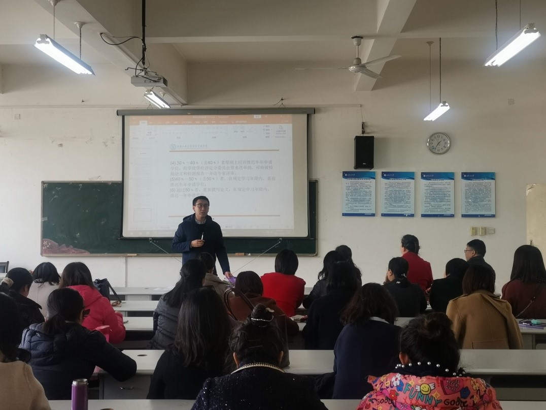 苏兵院长着重强调了导师在研究生培养的主导地位,号召导师将立德树人作为目标,切身履行好“引路人”的职责;并结合自己的从教经历、研究生教育的前景和发展趋势的分析,分享了研究生培养的具体做法和作为研究生导师的感悟。