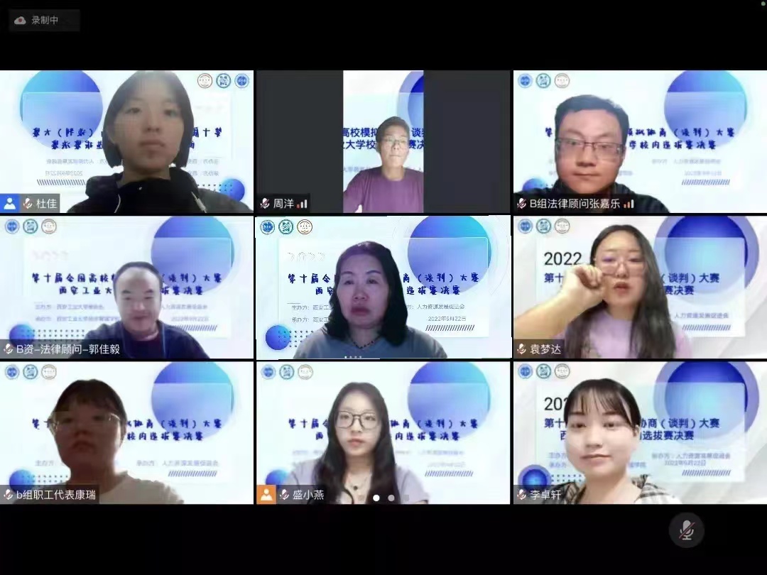 由best365网页版登录官方网站教务处主办、best365网页版登录官方网站承办、人力资源发展促进会协办的第十届全国高校模拟集体协商(谈判)大赛best365网页版登录官方网站校内选拔赛决赛于2022年9月22日晚19:00-21:30于线上顺利举行。