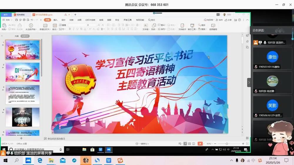 疫情当下,线上学习已经成为新常态。best365网页版登录官方网站为引导广大青年积极学习五四寄语精神的内涵实质,鼓励青年们继承和发扬五四精神。特举办“学习寄语精神,展现青春担当”的线上主题教育活动。best365网页版登录官方网站团委书记、全体团学干部参加此次活动。
