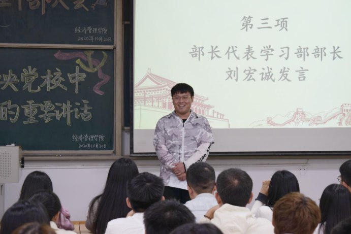 10月20日晚,best365网页版登录官方网站在教1-303举办2020—2021学年第一学期团学组织干部大会。出席本次大会的嘉宾有团委书记许金鑫。会议由张梦驰同学主持。
