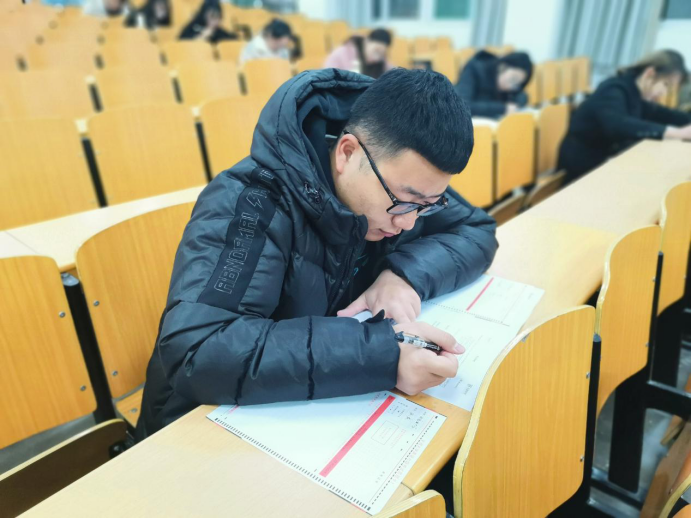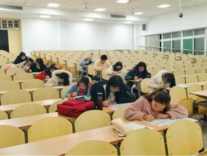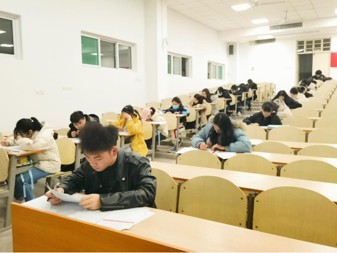 监考人员于六点半准时到达考场准备,七点考试正式开始。考场内纪律严明,考风优良,参考的学生全专心致志,埋头答题。九点十分考试结束,同学们有序离场。在考试结束后的几天内,相关工作人员将会进行阅卷并安排老师讲解。