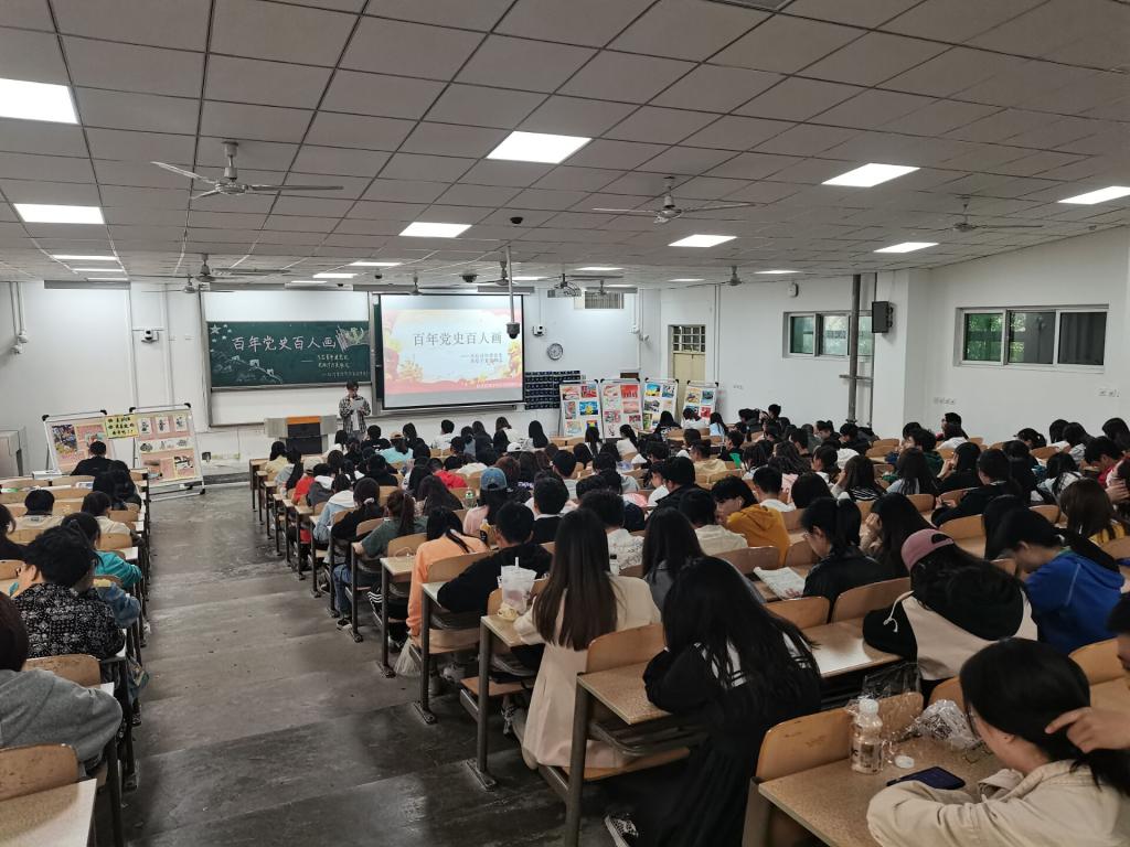活动伊始,由参加活动的所有观众对初赛中脱颖而出的七幅优秀作品进行投票,紧接着邀请优秀作品的作者依次介绍自己作品的创作灵感以及画作背后的党史背景。随后,为观众们放映了本次活动其他优秀作品的集锦以及关于党的一百周年光辉历程的党史视频,回顾中国共产党百年来的艰苦奋斗,进一步引导同学们听史明道、感史明智、悟史明心。