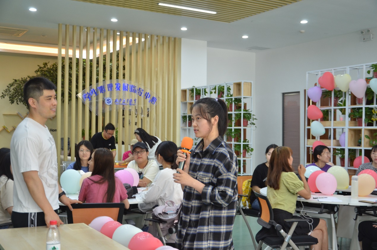 紧接着,许川引导同学们参与“裸心会谈”和“优势大转盘”两项心理游戏。在裸心会谈中,他鼓励同学们以十年为一个周期,敞开心扉讲出自己过去二十年难忘的故事,在自我表达与分享中回顾自己的人生、倾听别人的心事。在“优势大转盘”活动中,许川引导同学们讲出自身优势,并让同学们相互指出彼此的优点,进一步拉近了同学们之间的关系。