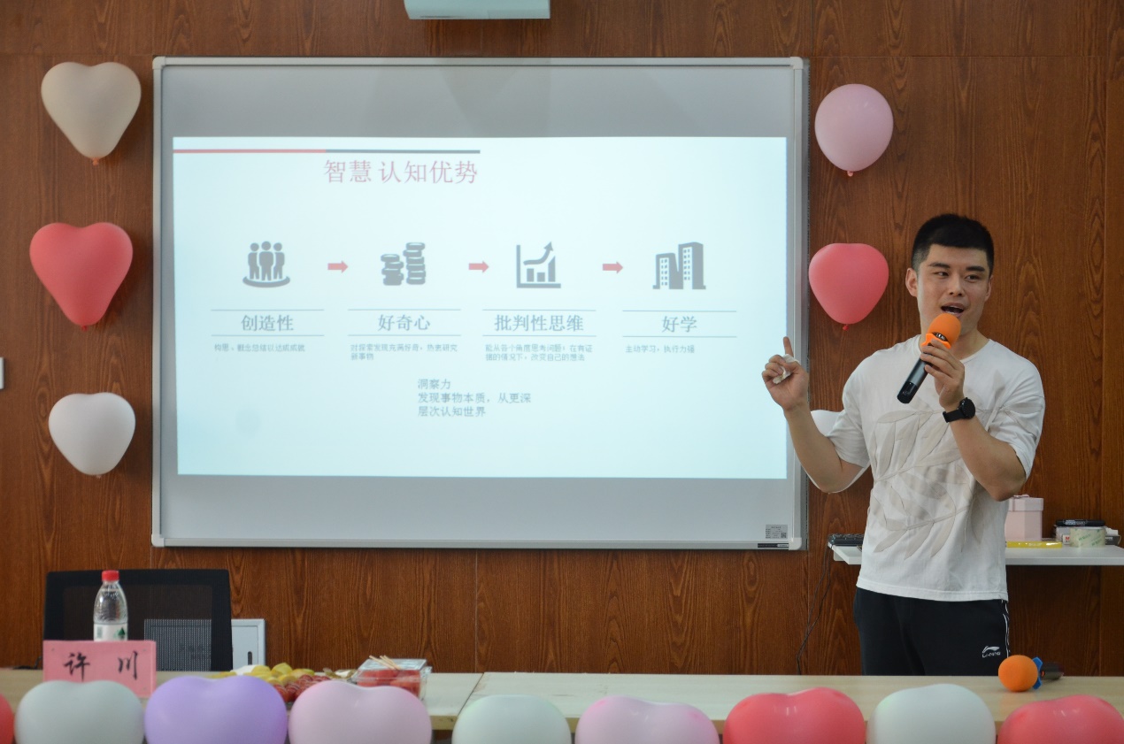 沙龙伊始,许川老师从积极心理学的发展与现状出发,从人的六种美德“智慧”、“勇气”、“仁爱”、“公正”、“节制”、“卓越”入手,让同学们重新审视自身优势、更好地全面了解自我。