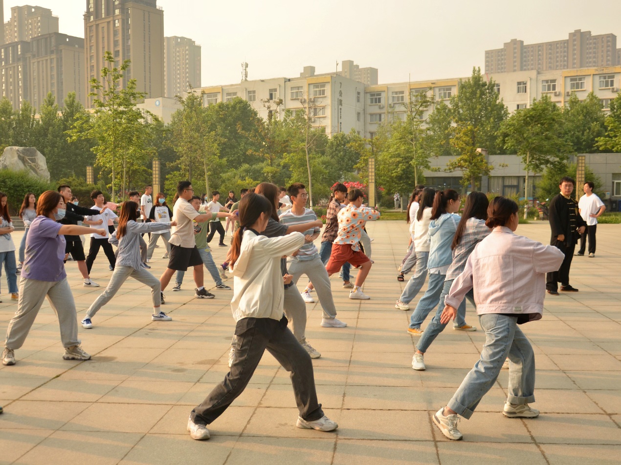 为贯彻落实服务青年主题实践活动,深化密切联系青年机制,进一步加强我院青年锻炼意识,增强青年身体素质。best365网页版登录官方网站青年志愿者协会与武术协会于2021年5月12日在博苑广场联合开展了“我为青年做件事”——晨起太极青年锻炼的主题实践活动,共计有70余名同学参加此次活动。