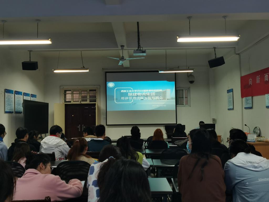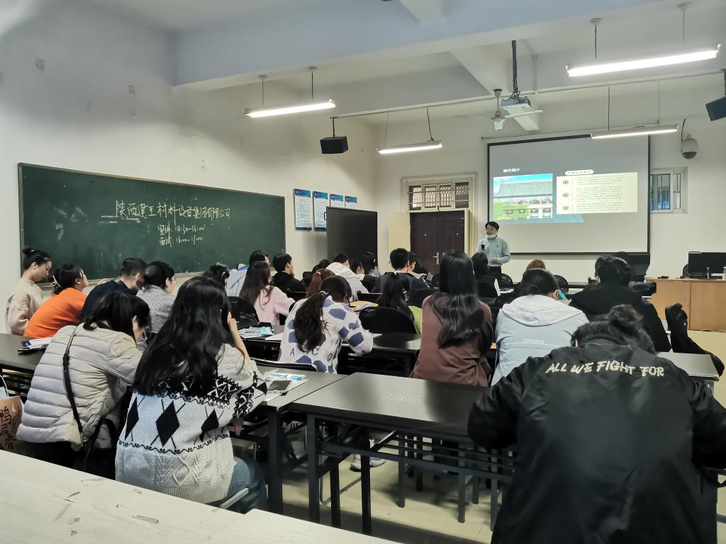 宣讲开始后,陕建物流集团HR就公司背景、管理体系、产业项目、人才梯队建设、福利待遇、企业文化等方面对在场同学做了充分讲解,表示陕建物流集团是一个充满活力的队伍,正处在数字化转型的关键时期,将通过信息互联、数据协同,打通供应链链接产业链,打造全国独具特色的建筑行业电商平台。公司目前在业务运营、财务管理、人力资源、行政企划等岗位需要大量人才,真诚邀请经管学子加入陕建物流集团!