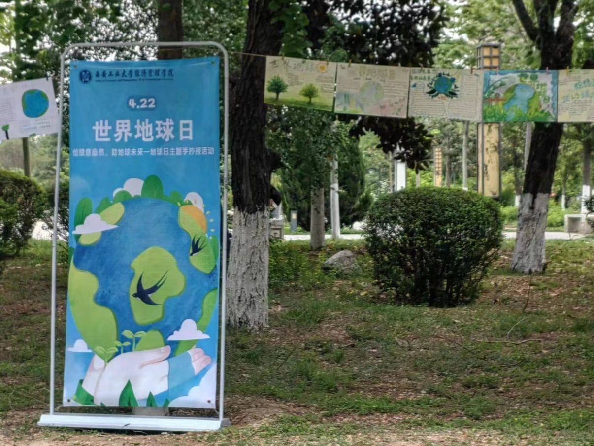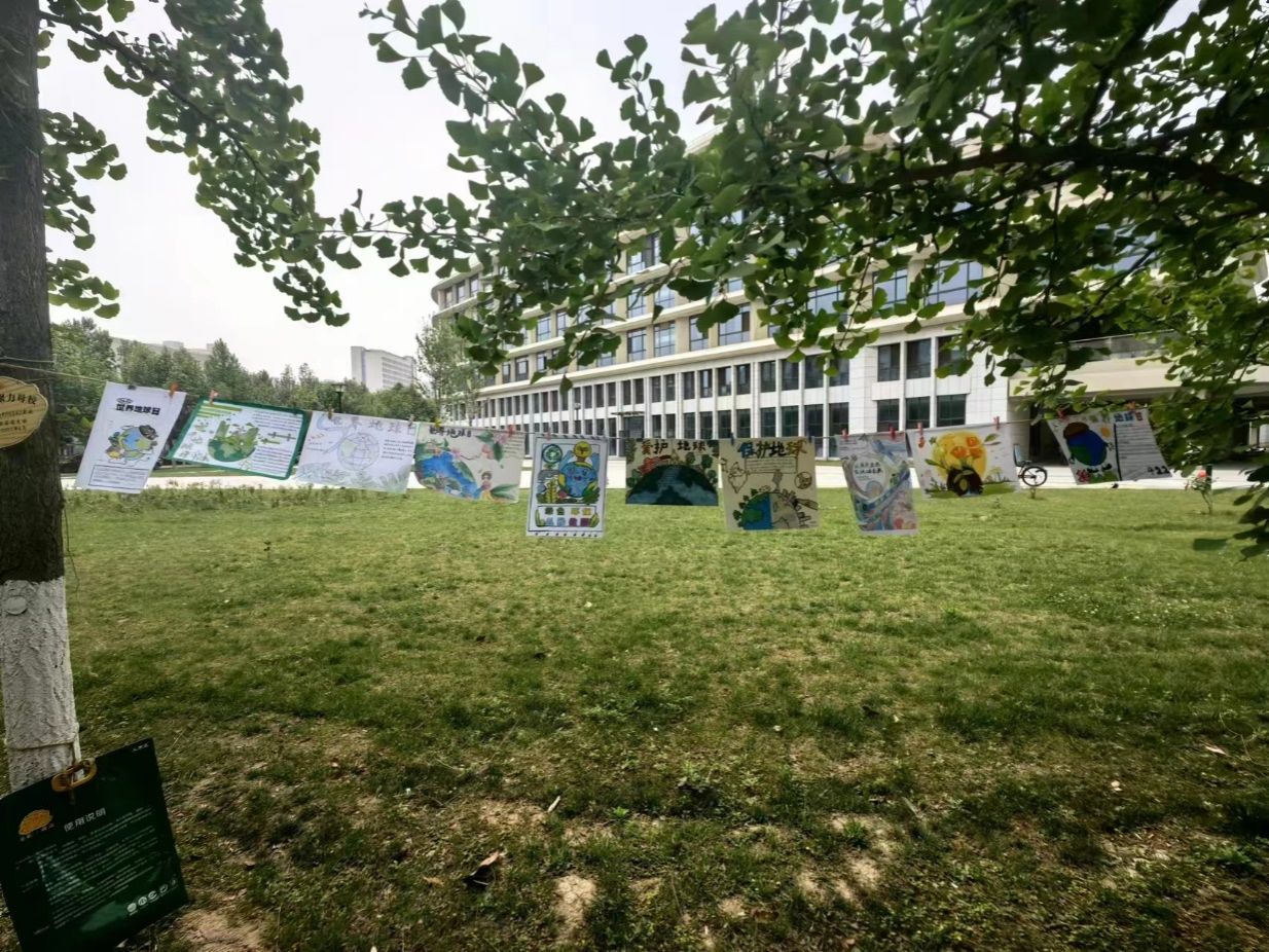 本次活动通过线上报名,线下提交作品的形式展开。同学们发挥想象创作出符合主题、情感丰富的作品。工作人员于21日在教9-615进行作品收集。紧接着,评委们综合考虑了主题、构思、绘画技巧等方面,评选出优秀作品并为创作者发放了奖品。22日下午,工作人员将优秀作品张贴在博苑广场教九楼下进行展示,青青绿树与充满绿色生机的图画相得益彰,充分展示了青年大学生的生态环保意识。